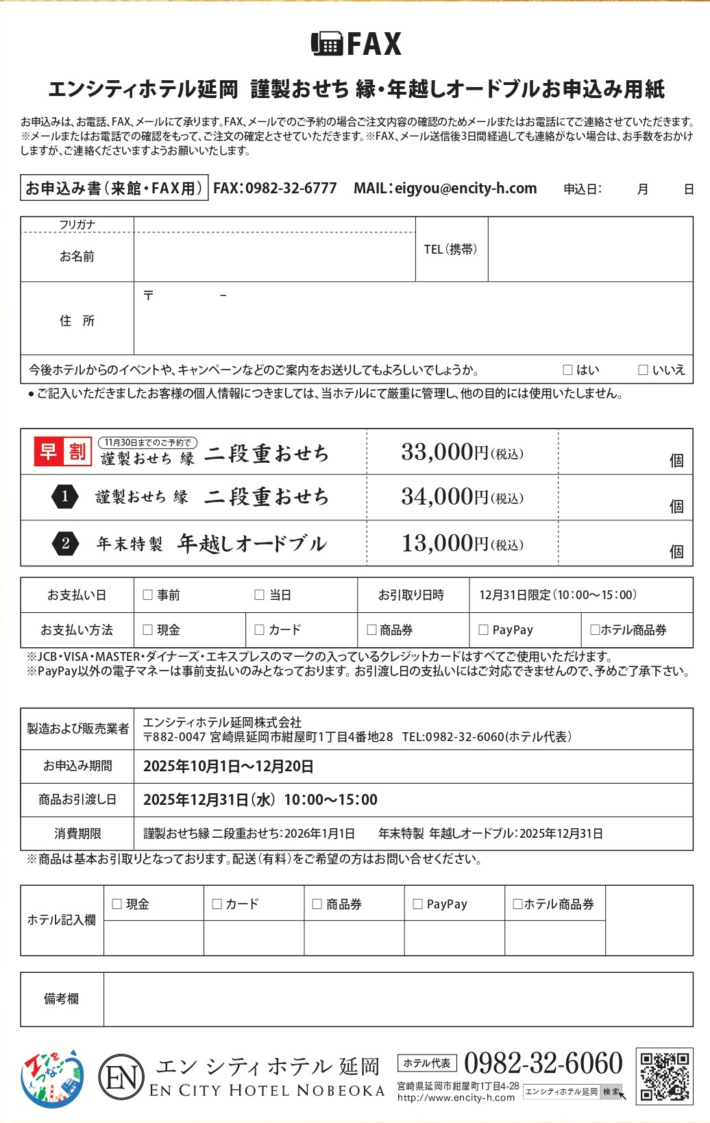新年の始まりを彩る、エンシティホテル延岡の特製おせち